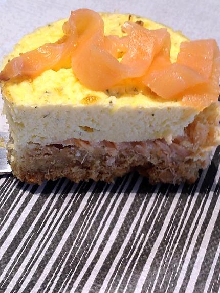 Cheesecake au fromage de chèvre frais ciboulette, truite fumée et ...